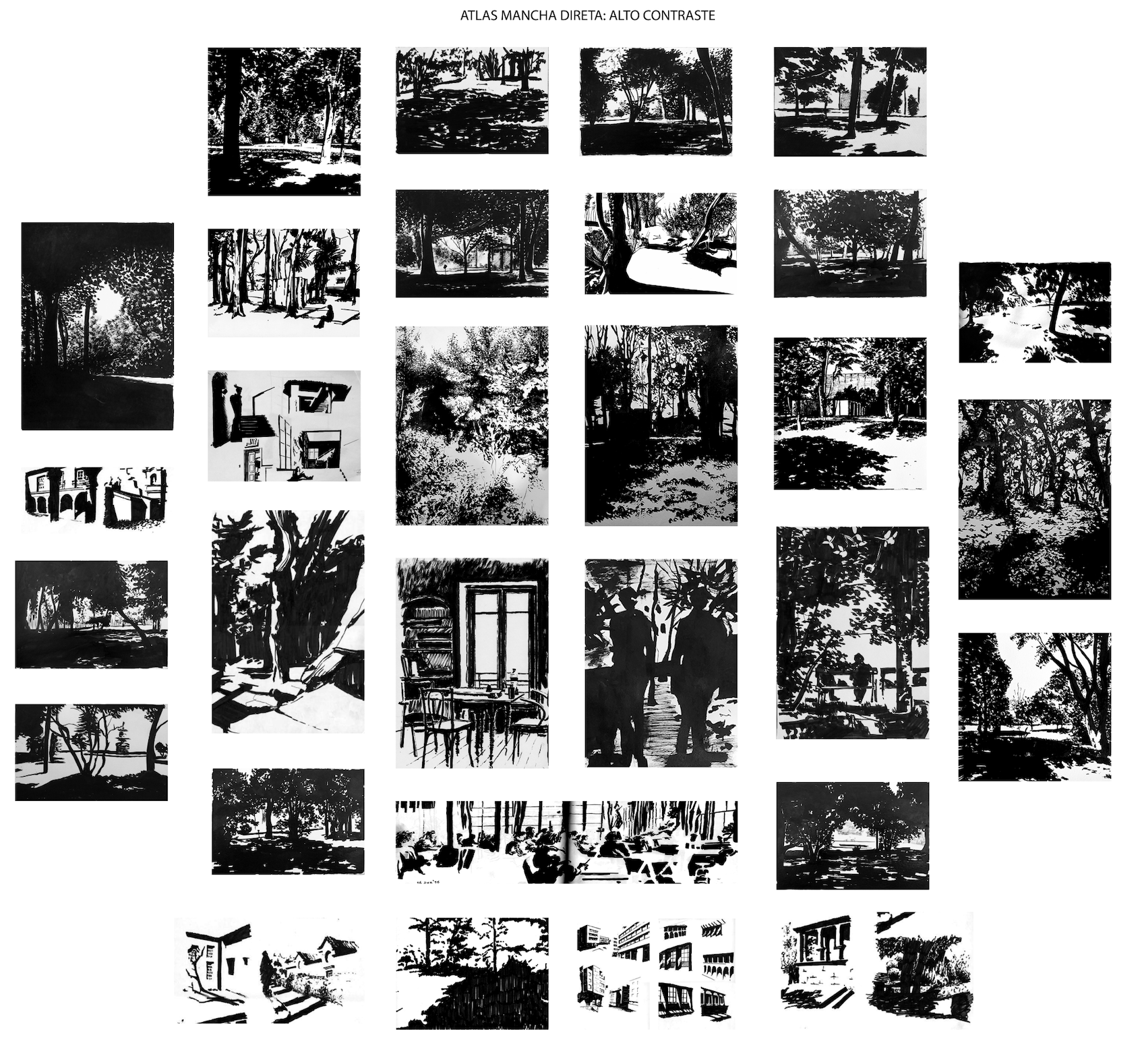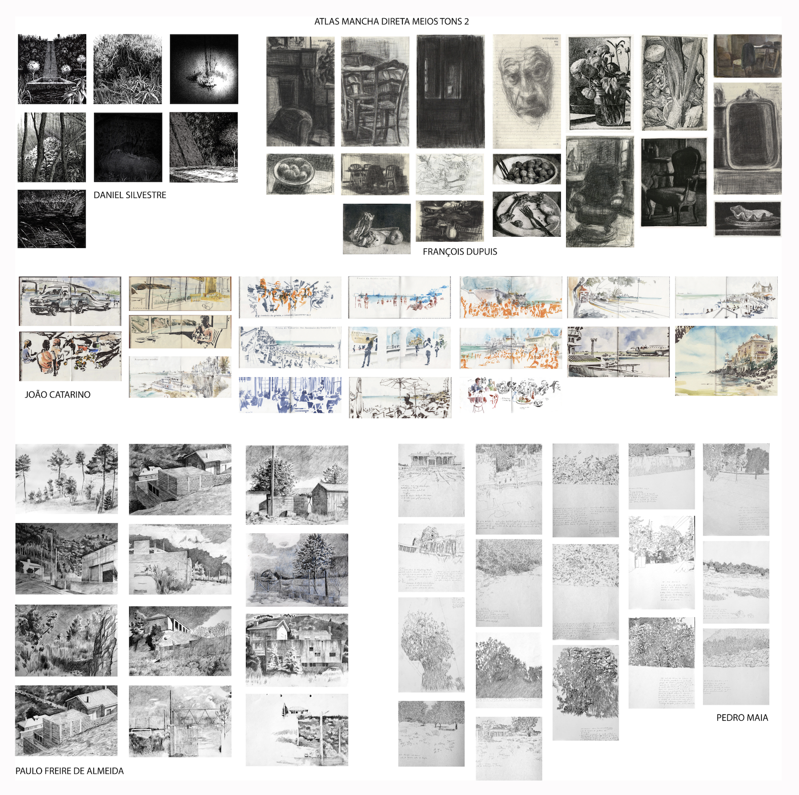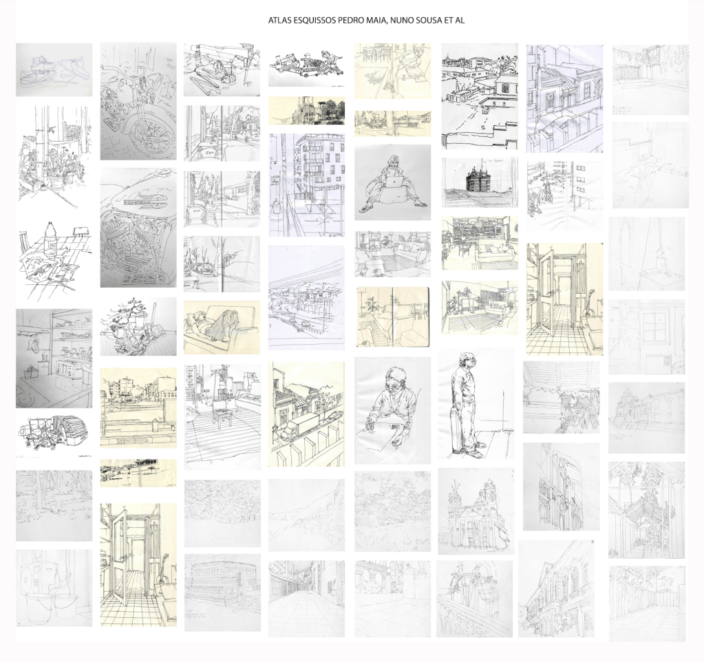 Atlas desenho de contorno rápido e lento (Pedro Maia). Autores(as): Alcino Rodrigues, Ana Linhares, Carolina Grilo, Catarina Moreira, Fernando Teixeira, Hugo Oliveira, Ivan Postiga, Jorge Carvalhal, Serhiy Dzyuba